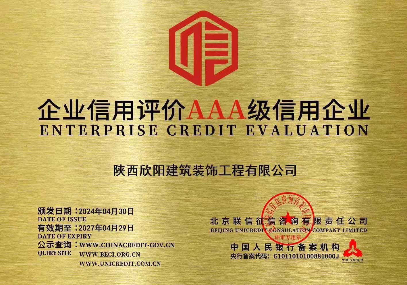喜訊!我公司榮獲企業(yè)信用評價AAA級信用企業(yè)等榮譽認證 近日,我公司榮獲中國人民銀行備案機構-北京聯(lián)信征信咨詢有限公司頒發(fā)的企業(yè)信用評價AAA級信用企...